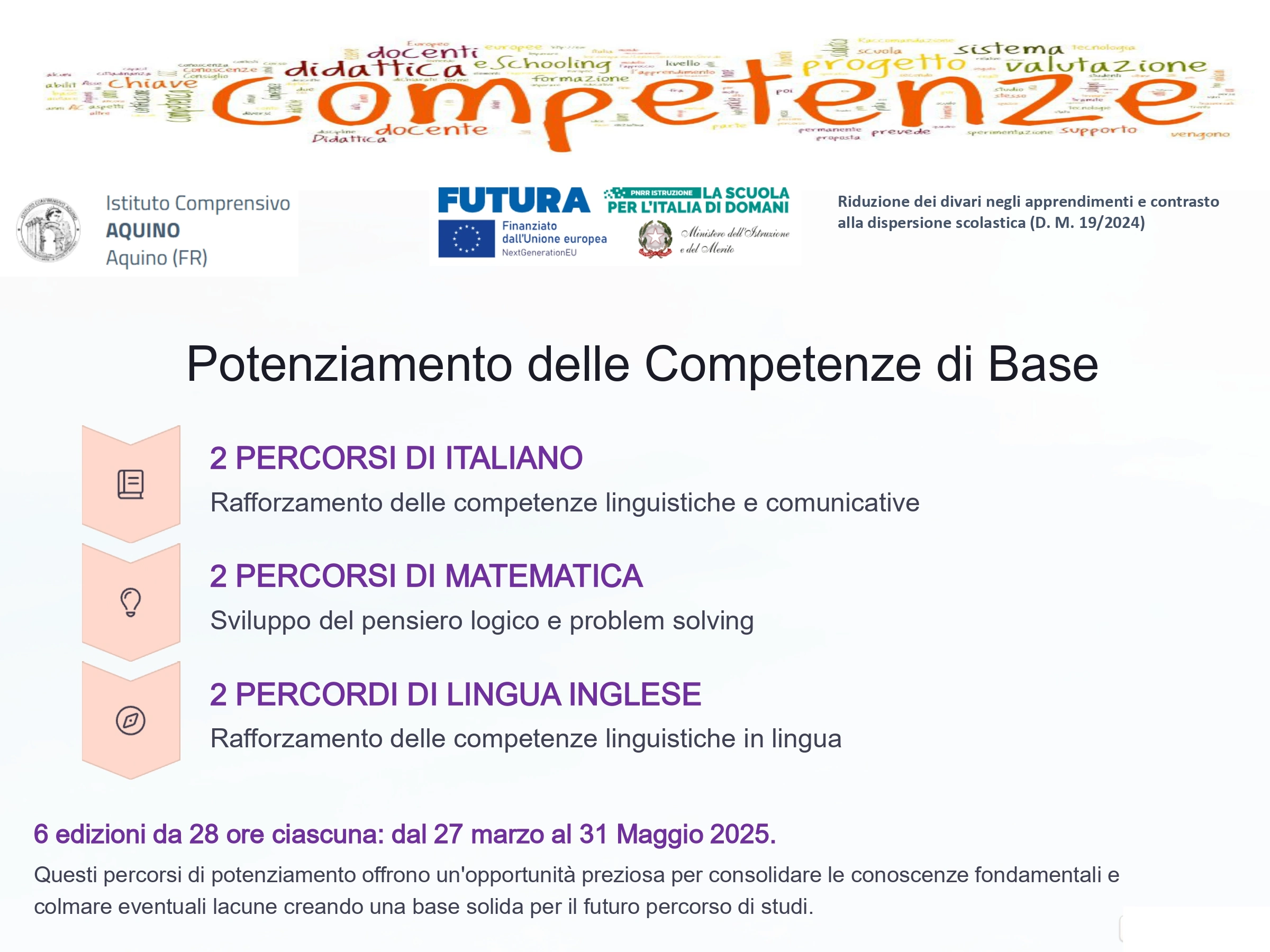 Questi percorsi di potenziamento offrono un’opportunità preziosa per consolidare le conoscenze fondamentali e colmare eventuali lacune creando una base solida per il futuro percorso di studi.